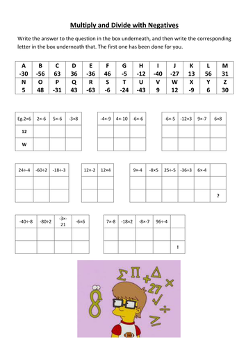 Login to an existing. Negative Number Multiplication and Division Quiz. Answer sheet Include answer sheet.